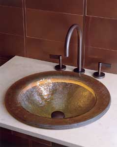 One of Ann Sacks's newest products, this is a sink handmade with multiple layers of glass.